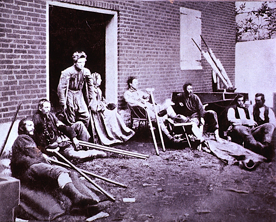 The young soldier did an about-face and hobbled to the tent-flap opening to go outside and onto the short wooden platform. The rain was falling in sheets, as it had been for hours, as he moved to step off the platform. Underneath his right armpit was the pad of the walking apparatus he’d used since losing that part of his right leg from below the knee at Chickamauga. His knuckles were white and gripping mightily onto the handle of the crutch. The cut-off thread strings of his twisted, knotted half-pant leg clung to his gnarly stub. He lifted his left leg in order to step off of the platform, followed by his right. The ground had become so wet and soggy that it was as if the soil was in the form of quicksand, and his crutch sank, quickly, into the mud. The awkward imbalance of this situation saw him land face-first in the ground. He twisted onto his left hip and started to hoist himself upright using his elbow. Once standing, it took everything in his power to lift his crutch out of the ground from where he’d placed it and then attempted to replace it, the “slurp-slog, slurp-slog” sound emitting repeatedly, unfailingly, from below.